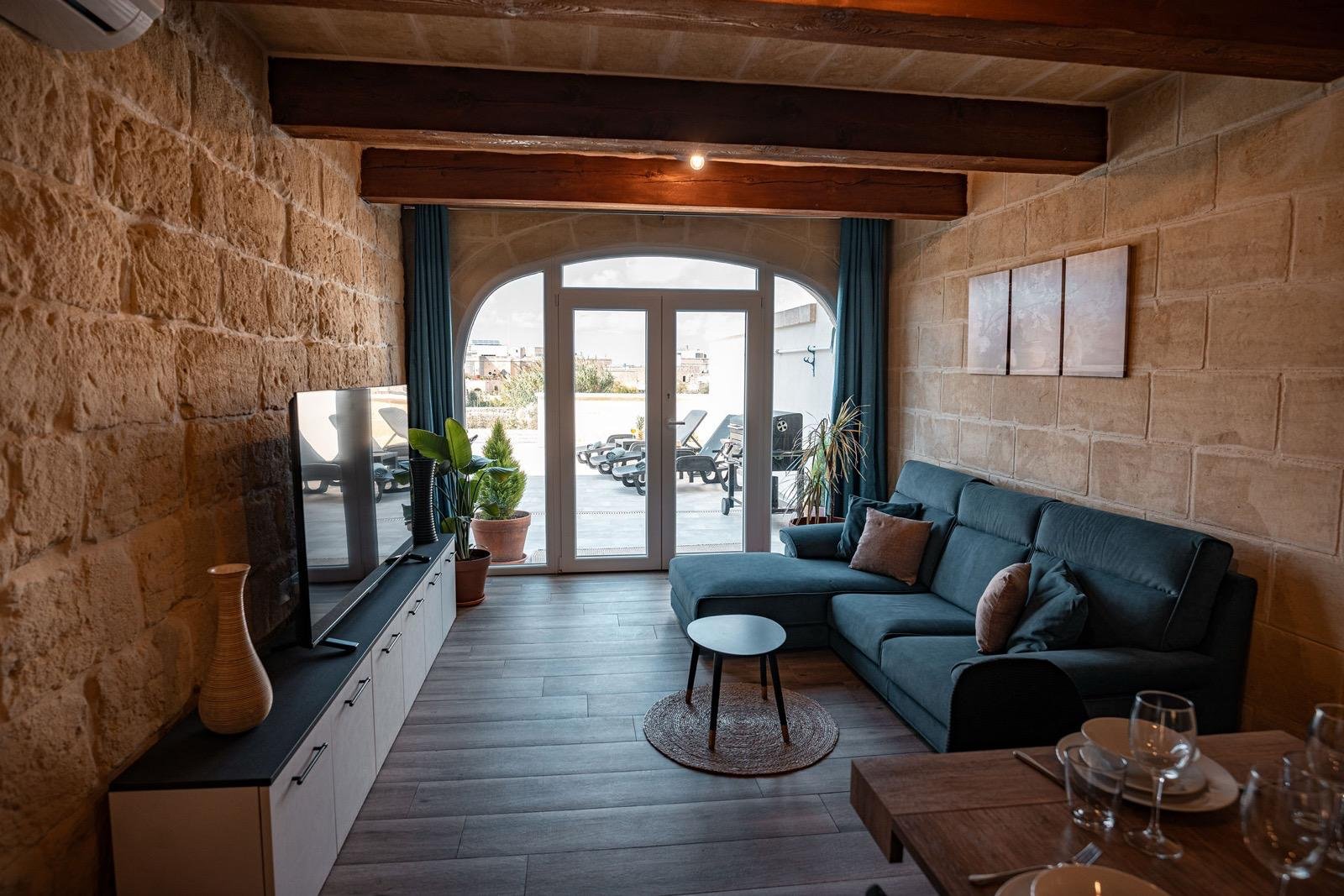 Serena Farmhouse in Gharb combines traditional charm with modern comfort. Featuring 5 bedrooms, 5.5 bathrooms, a private pool with BBQ, hot tub, and stunning views of Ta’ Pinu Basilica. Enjoy multiple terraces, a fully equipped kitchen, and preserved stone features that highlight its authentic Gozitan character. Perfect for families or groups seeking relaxation and style.